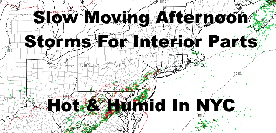 Today we start out with sunny skies, but then action begins to build in the interior Mid-Atlantic and lower Northeast in terms of thunderstorm activity. Some of those may drift our way, but the best chance of seeing storms will be any of our listening area close or slightly into the interior; such as Manhattan and the Bronx.