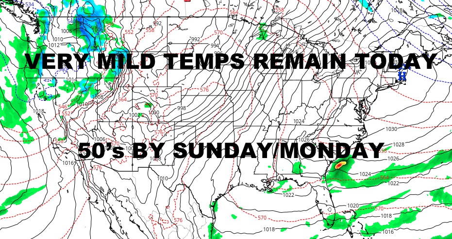 Good morning everyone. Quiet conditions persist in the Northeast aside from a small sliver in parts of New York & Pennsylvania, but we’ll get into that in the minute. Elsewhere, we have mostly sunny and mild conditions, with one more day of 70’s across the coastal plain. Starting tomorrow we sink into the 60’s, then 50’s by Sunday as cool air gives us a quick showing.