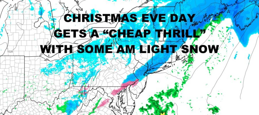 For some areas, a White Christmas is likely, especially across interior parts of the Northeast and New England as any light snow that falls tomorrow morning, should still been the ground by evening. In other areas such as New York City and Long Island, it’ll be a close call as temperatures above freezing may melt what-will-have fallen.