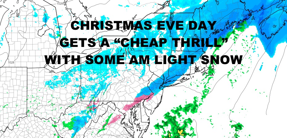 For some areas, a White Christmas is likely, especially across interior parts of the Northeast and New England as any light snow that falls tomorrow morning, should still been the ground by evening. In other areas such as New York City and Long Island, it’ll be a close call as temperatures above freezing may melt what-will-have fallen.