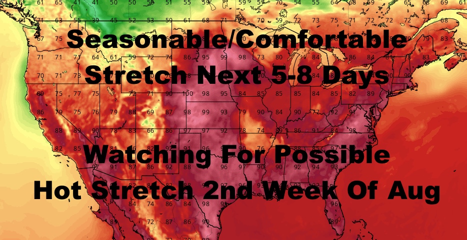 Good morning everyone. We have another gem today and fairly comfortable weather for the next 5-8 days overall. We’re looking down the road in this segment, and I’m still seeing the possibility of some very hot weather building back after this comfortable stretch.