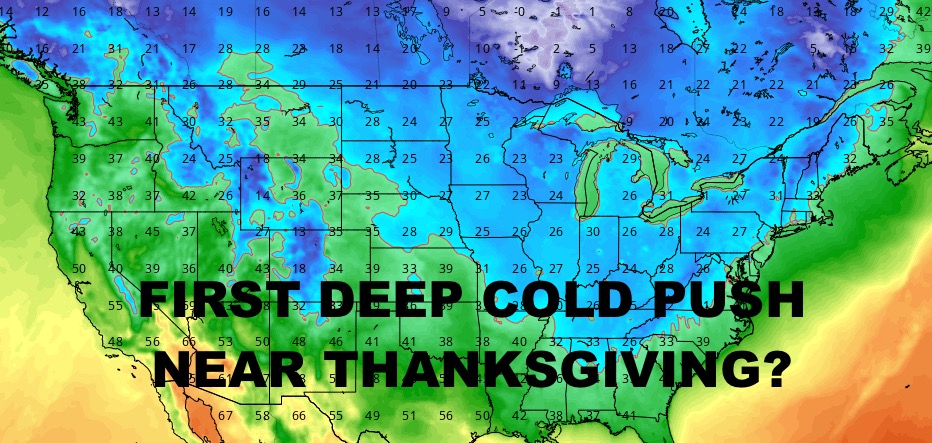 We’re also watching what-could-be the first arctic blast of the season the lower 48 states. This time of year, any arctic intrusion modifies fairly quickly, but that doesn’t mean it can’t bring unseasonably cool or chilly temps to our region for a few days. That arctic airmass wants to make a showing near Thanksgiving, so we’ll be watching closely to see if ti comes to fruition, and if so, if it’s able to drift into the Northeast. Right now confidence is at 60-70% of this happening, and our margin of error in terms of time, is a 2-4 day margin.