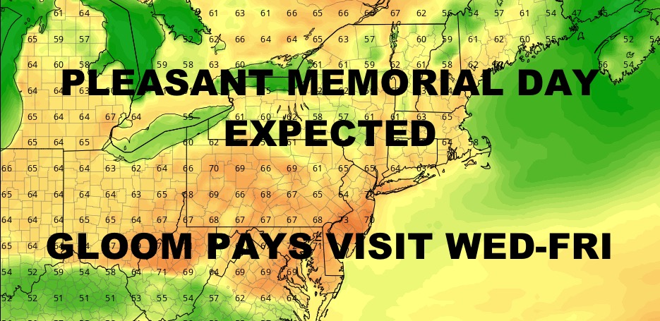 Good morning everyone. We’re expecting some really nice weather for the 2nd half of our Memorial Day Weekend, but we have to trudge through some gloom first; starting with tomorrow. Enjoy the sunshine and comfortable conditions today, because we cloud up quickly overnight and it’s going to be very raw out.