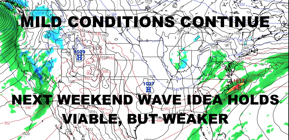 Good afternoon everyone and Happy New Year! We bring the New Year in on a mild note, but by the end of the week, we are back to seasonably cold conditions. We’re also watching some prospects here and there, and while the first one continues to show SOME viability, it looks to be on the weaker side of things as opposed to a powerful snowmaker.