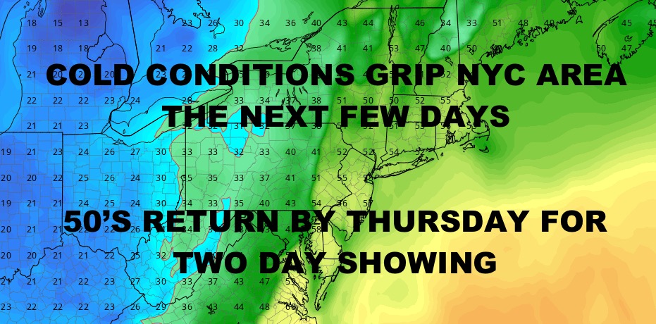 Tomorrow is another cold one in the upper 20’s to low 30’s, then back to near 40 by Wednesday. Ahead of our next system we’ll have some milder air under mix of sun & clouds and highs in the low 50’s by Thursday. Rain creeps in overnight, then we have some early low 50’s on Friday before we clear out and cool off.