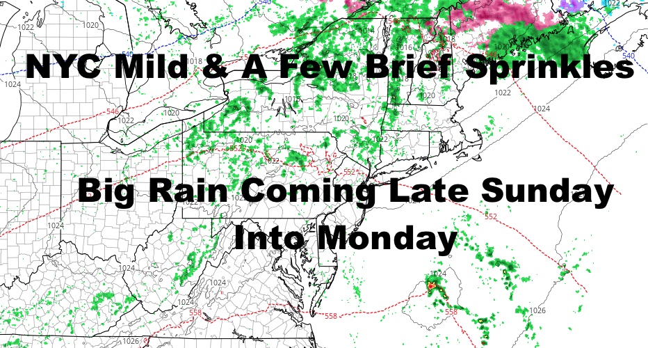 Clouds will increase Sunday morning with a large system approaching to our west. Expect the chance of some showers Sunday afternoon, but the bulk of the steady rain heads in overnight Sunday and into Monday. Highs Sunday in the upper 40’s to near 50 as the lack of sunshine and earlier precipitation, cuts the legs off of any chance for a milder day.