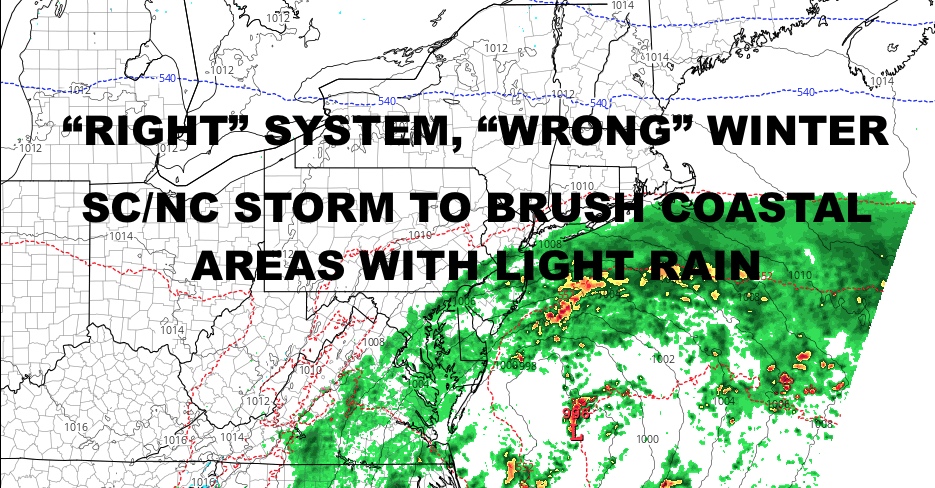 Good morning everyone. We’re having some big problems here trying to get some snow in the NYC Metro Area, with each mild dose and each quiet week making it more difficult to produce anything. Our brush with a system that’ll give the SC/NC mountains some hefty snows, would in theory have given us a brush of light snow across coastal sections, but it won’t work out that way: it simply can’t.