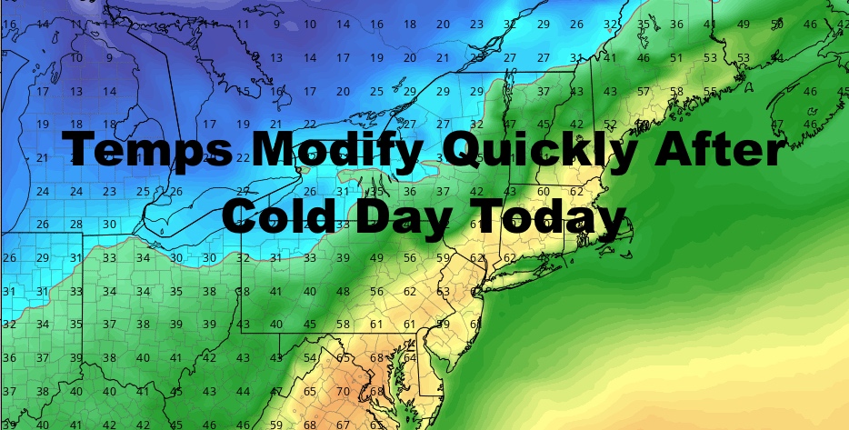 Good morning everyone. After our annual snow squall event yesterday and cold day today, we get a 3 day reprieve from chilly weather before we turn our focus towards late week. So far, a lot of questions remain for Thur. night/Friday, but it’s leaning towards not an all-snow event for the NYC/Long Island area.
