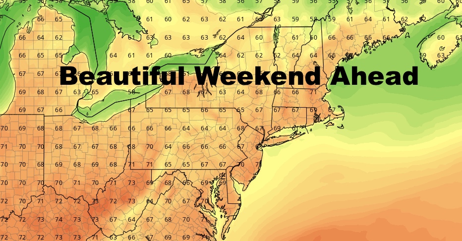 Thursday and Friday look like winners as well. We’ll do mid 60’s for Thursday, mid to upper 60’s on Friday, both under full sunshine, and both dry days.