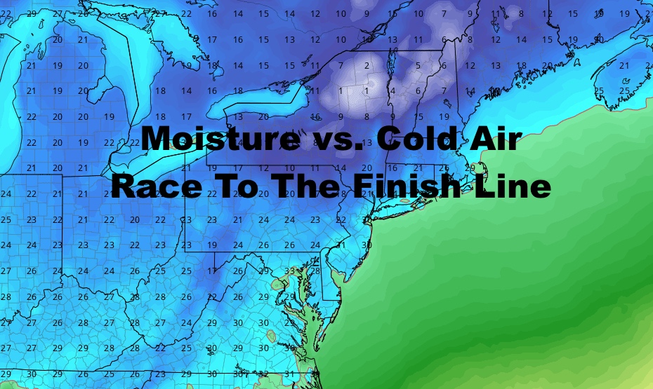 Rain creeps in by Monday night, and lows in the mid 40’s will be Tuesday’s early highs. Expect temps to plummet as the day goes on, and it’ll be a race to the finish line to see if we can get a mix into the area. Most of the energy will be in New England, so it could be another case of the precipitation shutting off before the cold air gets here. However, the cold air is moving faster than it did on Thursday, so that may negate the fact precipitation sticks around longer to our Northeast.