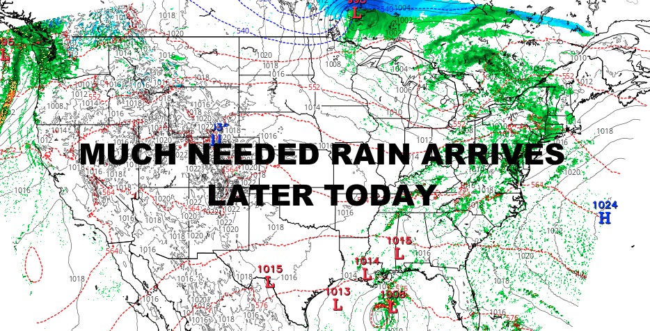 Clouds increase today with the chance of some light to moderate rain this evening and into the overnight hours. Upwards of 1″ of rain may fall, but most areas should see 1/4 – 1/2″ of some liquid gold. Highs today in the near 60 range at best.