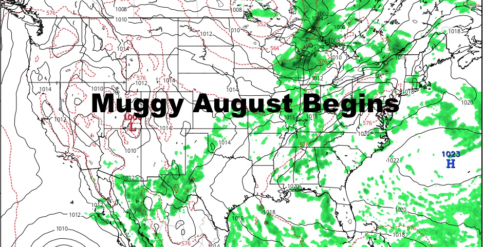 Good morning everyone. Sunshine and typical August muggy weather has arrived and here to stay for a while. We’ll be in and out of the moisture throughout this period, with a few chances of showers and storms here and there, but we’ll have no organized, prolonged rainy days, so we’ll have to watch for minor drought conditions possibly developing.