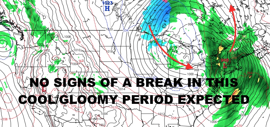 Good morning everyone. To simply put it, we do not have a nice last weekend of April and things are looking not he cool side overall. The pattern is unfolding as expected, and aside from a mild day here to there, we trend cloudy’ish and cool as a couple of systems grind to a halt in the Great Lakes region.