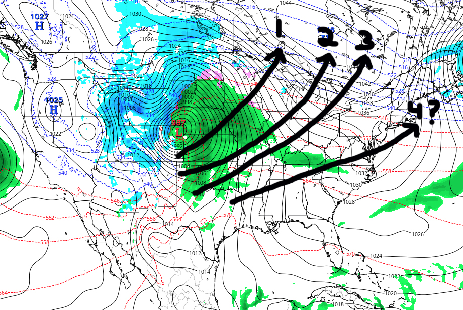 NYC NEW YEARS OUTLOOK – Over the start of New Year’s weekend, the NYC is looking chilly, with highs Friday and Saturday in the mid to upper 30’s. New Year’s eve itself won’t be as bad as it could be for Late December/early January, but it’ll still be below freezing, with lows in the upper 20’s to near 30 degrees. Make sure you bundle up if you’re going to Times Square to see the Ball drop. On New Year’s Day, warmer air begins to move in temporarily ahead of another potential system. Highs Sunday and Monday have the potential to be well above normal, but we’ll have to see what the exact track of the system is. The map above depicts my gut feeling on what’s going on. The models themselves may as well get a viking funeral right now. However, through the errors you can see a pattern brewing, a progression of systems trending eastward. In the past, this is generally a harbinger of a potential big system and a cold shot for the Northeast corridor. We’ll have to wait and see after New Year’s what this means and how it’ll play out. That being said, an extended period of warm weather is unlikely and a cold shot of air is becoming more likely down the road, while the parade of systems continues from west to east.