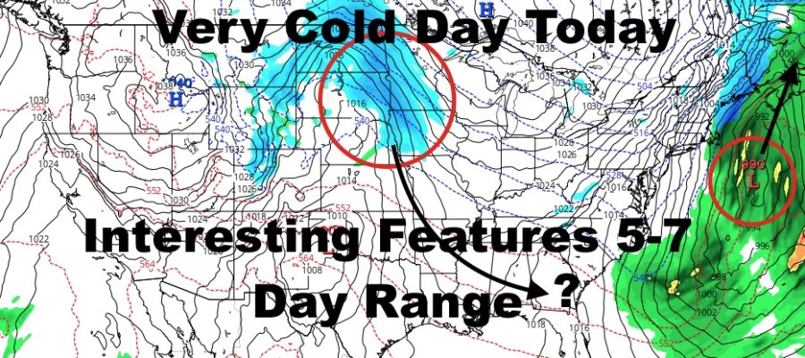 Good morning everyone. We have the core of very cold air over us today, and we are watching some features on the map for an interesting late week into early next week. Check out the latest below.