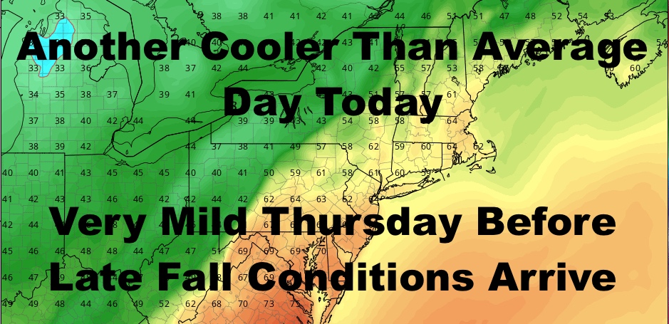The weekend is looking quiet and half-chilly, with sunshine, steady WNW winds, and highs in the mid to upper 40’s Saturday; then we modify back to average on Sunday with low to mid 50’s for highs & sunshine.