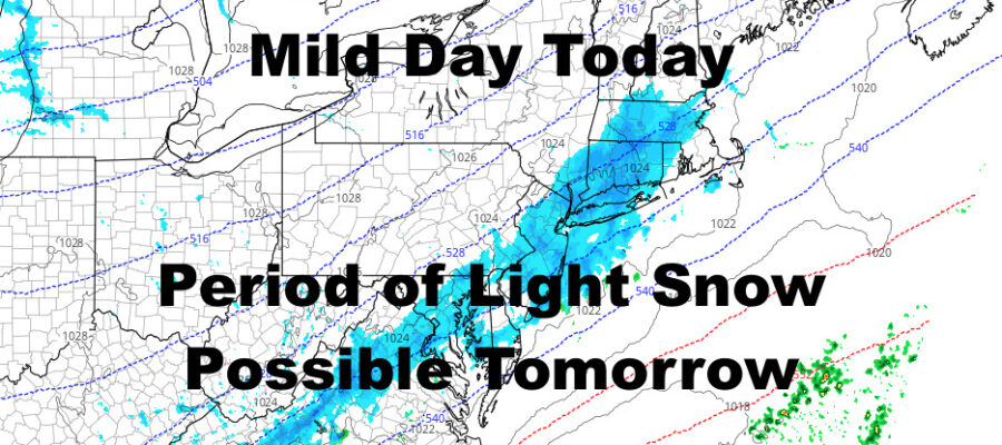 If that precip is even able to form, we’ll have some light snow starting between 5 and 8am, then lasting till late morning/early afternoon. The max we’ll see out of this will be a dusting to 2″. Best chance to see the higher end of the spectrum (and I stress the word “chance”), will be the east end of Long Island. Highs will be in the low 30’s tomorrow.