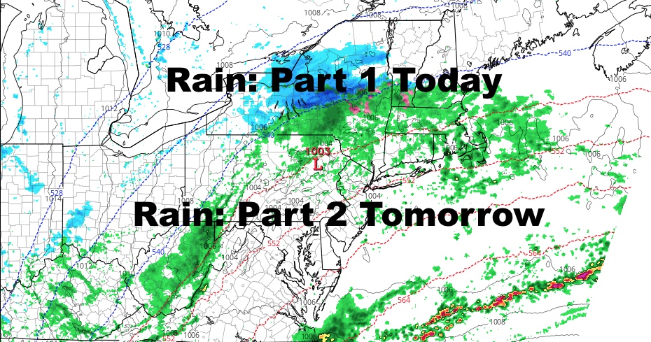 Good morning everyone. The gloom is upon us and rain will be in and out of the area till late tomorrow night. Things will clear up for the second half of the weekend, but it’ll feel chilly as blustery conditions settle in with seasonably average temps.