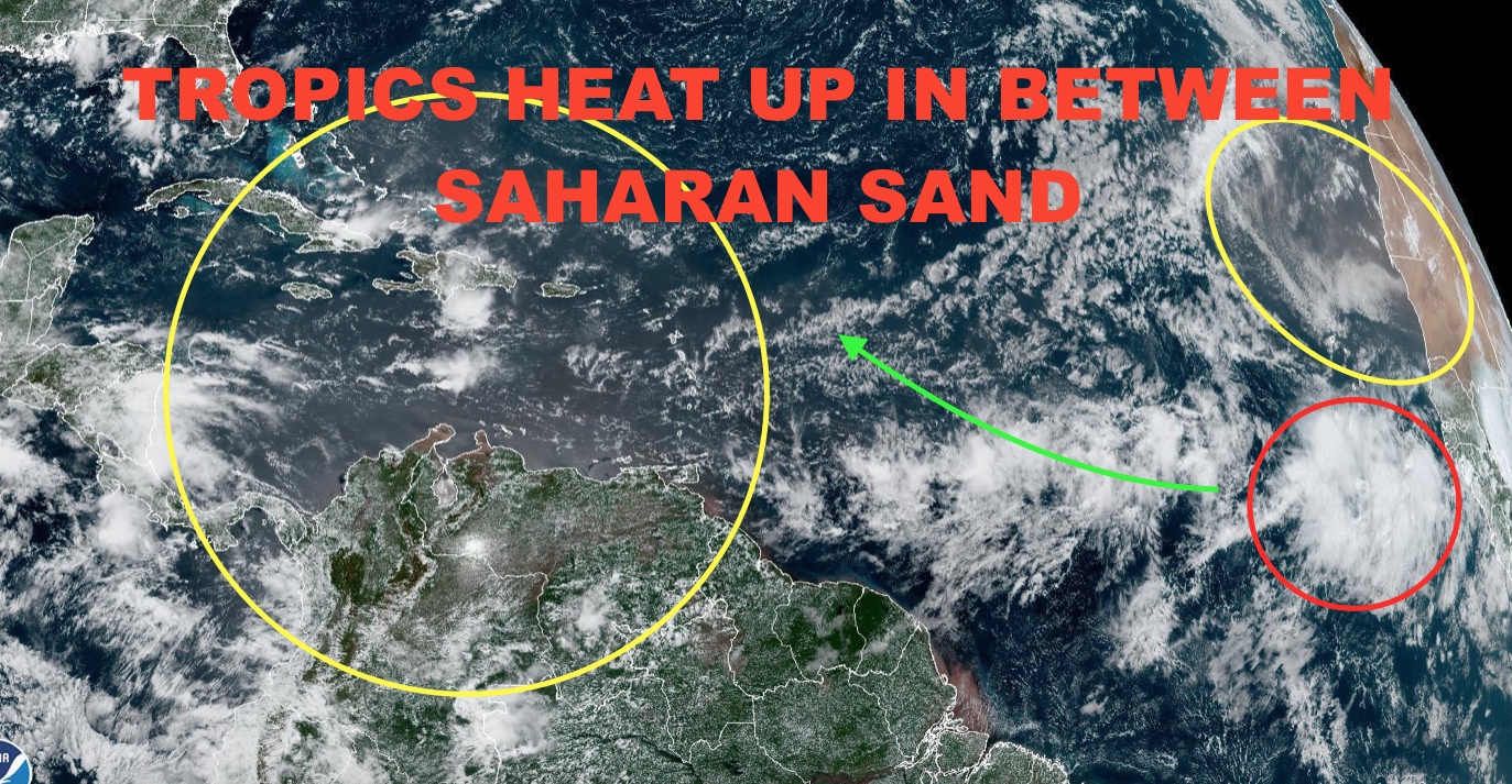 As for the tropics, Saharan sand helped keep a lid on tropical activity, but a friendlier environment has emerged in between two batches of sand. We talked about how eyes should be pointed towards Africa a couple of weeks ago during a live session, and that seems to be coming to fruition right on time.
