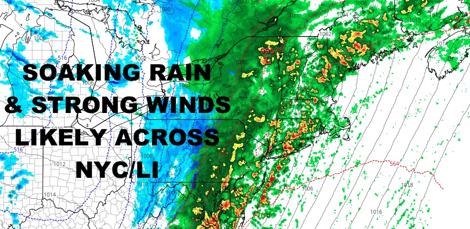 As low pressure takes the inland route and I95 corridor into New England, heavy rain and wind will spread across New York, New Jersey, Pennsylvania, Connecticut, Rhode Island, and Massachusetts. We could see a few rumbles of thunder with this, but the primary threat will be heavy rain and damaging winds. In fact, along coastal sections of eastern Long Island, Connecticut, Rhode Island, and Massachusetts, we could see wind gusts reach or exceed 60mph.