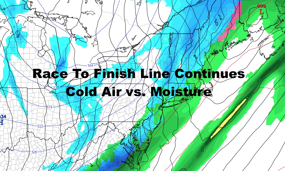 Several days ago, we started discussing the prospect of this mixed precipitation or changeover to wet snow. My concern was that most of the energy would be going to our northeast, cutting off the precipitation before cold enough air gets here, or at least limiting how long we see any mixing.