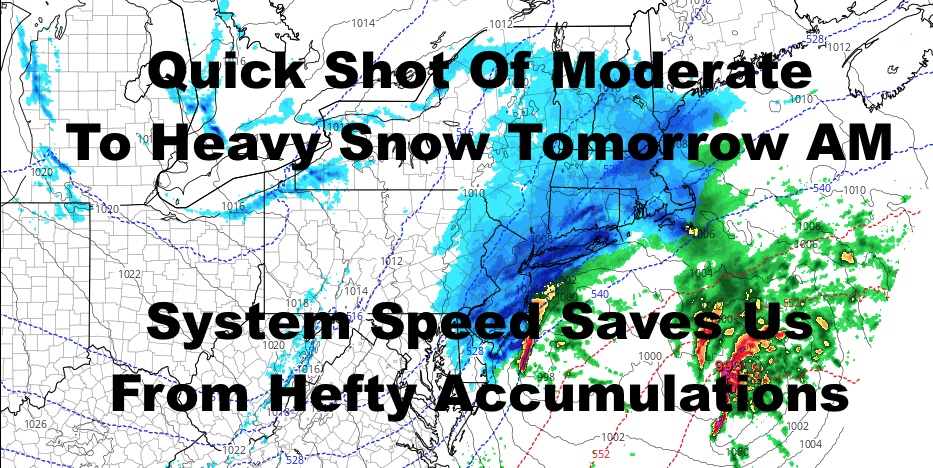 I’m not doing any fancy snow maps on this one since it’s a quick shot and a general blanket of light to moderate accumulations. Expect a 2-4/3-5″ type snowfall, with the slight chance of a few 6″+ “lollipop” hits out on the east end of Suffolk and/or where the heaviest snow band sets up.