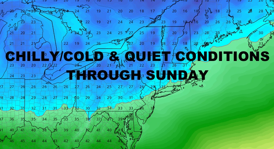 Good morning everyone. Our powerful storm system that gave the Northeast strong winds and heavy rain, is quickly departing the area. With it, cold air is swooping on in with windy conditions and flurries/Lake Effect snows well inland & across east/southeast facing lake shores. Once the Lake Effect shuts off, we remain mostly quiet until our next system due in on Sunday night.
