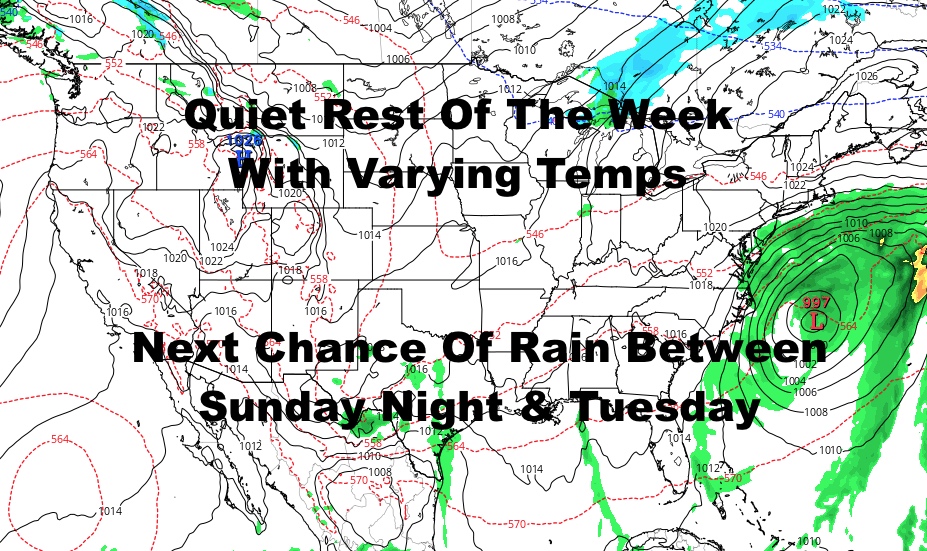 Good morning everyone. We’re having a quick taste of January with the cold that’s paying a visit today, but other than that, things are relatively quiet. Dry weather is expected for the next 5 days, until our next chance of rain somewhere between late Sunday night and Tuesday.