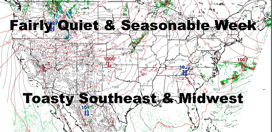Good afternoon everyone. We’re sitting in a pretty good spot compared to most of the Country, where the Southeast and Midwest are cooking; and areas on the edge of the ridge experiencing severe weather. We’ll remain quiet and seasonable all week and the weekend, but Friday could get a little toasty for a 1 day show.