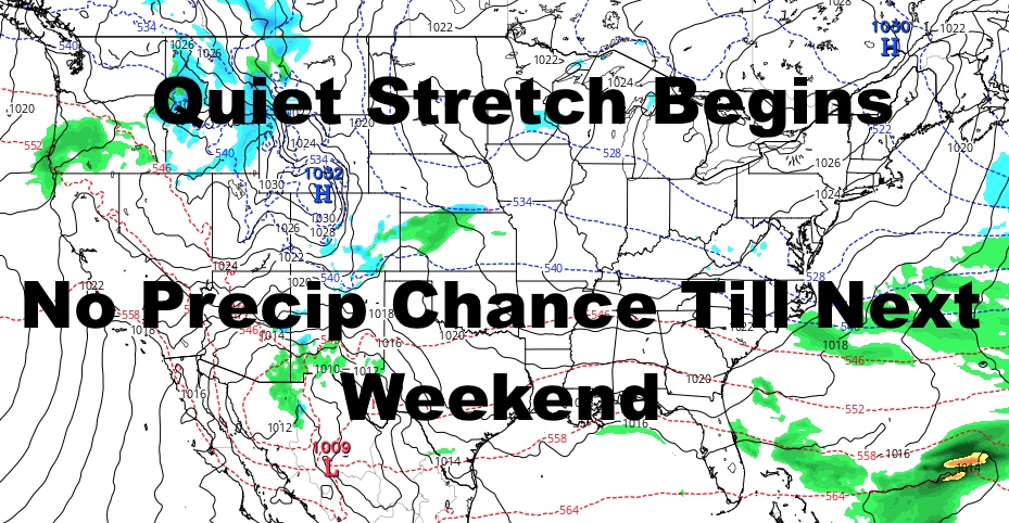 Good morning everyone. Our windy rainmaker from yesterday is long past us now and clouds will begin to decrease as our day goes on. A quiet and rather dry 6-7 days will ensue, and there’s nothing really to discuss until mid-next weekend where we will be watching our next system.