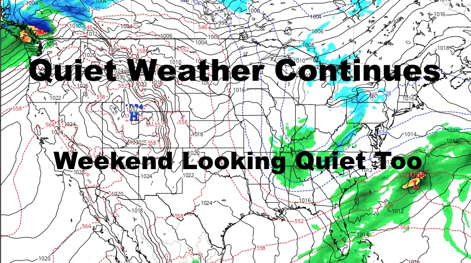 Good morning everyone. Our quiet and mostly dry stretch continues for our work-week, and the much anticipated (by some) system due in this weekend simply doesn’t pan out the way imagined (by some). We’ll explain below why, and what to expect otherwise.