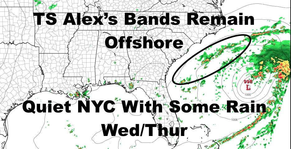 We’ll have full sunshine today and upper 70’s to near 80. Rip currents won’t be an issue here today since Tropical Storm Alex remains compact and on the move well offshore.
