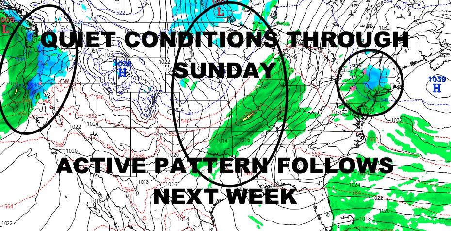 Good morning everyone. Although cold and still breezy in some spots, the Northeast is enjoying some very quiet weather until our next system due in late Sunday. Sunshine and 30’s prevail for the next few days, then we expect some brief onset snow, sleet, and freezing rain for interior parts of Pennsylvania, New York, and into New England.