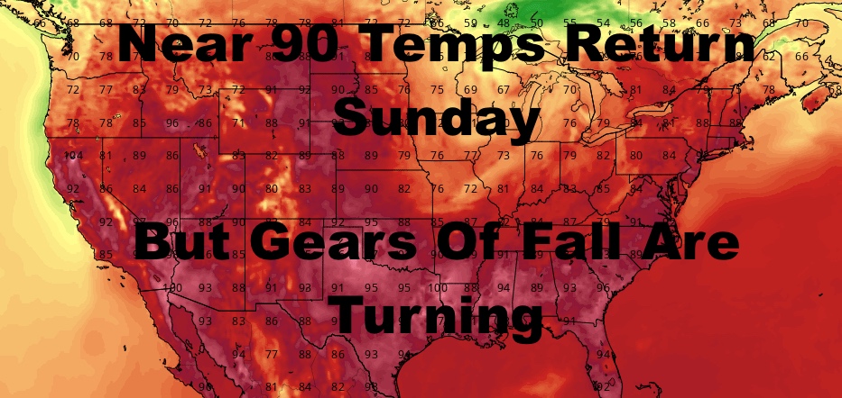 Good morning everyone. We have a relatively pleasant work week ahead minus any rain of significance, nor any hot weather to speak of. However, the heat will be increasing again this weekend, but the gears of fall are turning in regards to the increasing speed of our systems, and any heat won’t last very long.