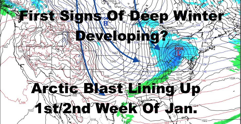 In the long range, things look like they’re gearing up for a possible arctic blast some time between Jan 6th and Jan 12th. The arctic air is already pooling up, and all we need is a mechanism to bring it down. That may come in the form of an “Arctic Clipper” system, but we’ll have to investigate further to hone in on the timing or if it materializes at all. Either way, very cold air is available now even though it’s quiet and comfortable here for the moment.