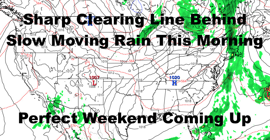 Good morning everyone. Rain this morning is slow to move, but we’re getting there as far as opening up the door to a wonderful weekend weather-wise. We should have a pretty quiet week overall, and eyes are on Hurricane Sam to see what he’ll do to our jet stream in the long range.