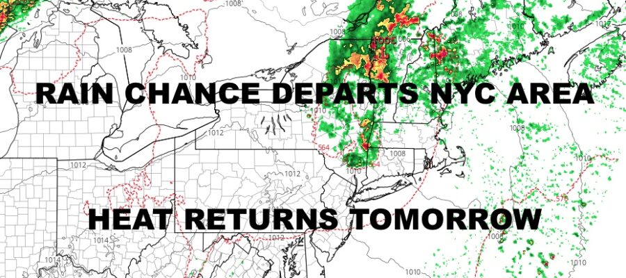 Good morning everyone. We have a few scattered thunderstorms departing the Forks of Long Island as we speak, and we have a little bit of weak energy leftover from our west that is about to push through. With the sun working the atmosphere now, we could see a few popcorn showers and storms over the next few hours before we begin to clear out and dry up. We’re talking drying up rain-wise, not humidity-wise, because that humidity and heat is going to come roaring back.