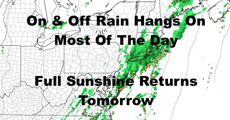 Expect on and off light to moderate rain throughout the day. We will have some breaks here and there, but we’ll remain cloudy. We could also hear a rumble of thunder, a some heavier rain when that does occur. Things will begin to clear up overnight, opening up the door for a beautiful day tomorrow.
