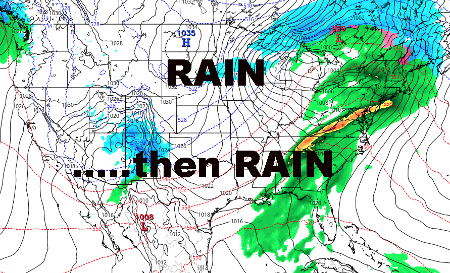 Moisture will head up our way, but the primary low will go to our west. This means rain for our area for Monday into Monday evening. Depending on the timing, we could see some wet flakes to start, but with this path and lack of redevelopment off of the coast, any frozen precip would quickly change to rain. We’ll also have to wait to see the exact timing to see if it affects the Ball Drop at Times Square, but either way, you may get rained on waiting for it and it’ll be a cold rain.