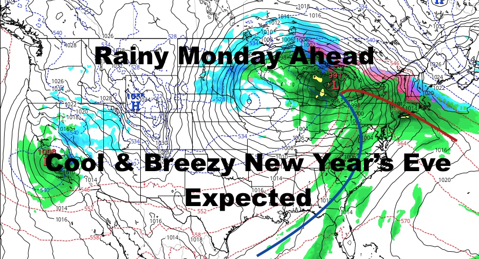 Good morning everyone. We’re enjoying our last of the sun and mild temps today before our next system begins to head in. After all is said and done, we’ll resume the status quo for this winter so far, but expect a cool and breezy New Year’s Eve at Times Square if you’re going.