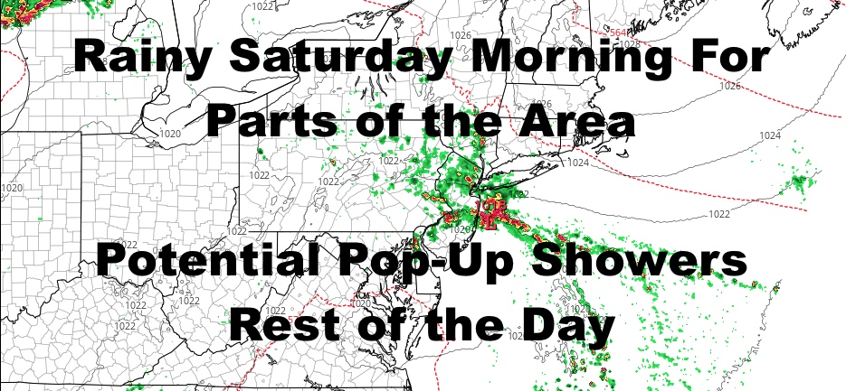 Rain has popped up across Long Island and parts of the City, slowly drifting in all directions southward. We’ll have cloudy skies for the rest of the day, with some spotty, pop-up downpours possible at any time. Highs today will be an unseasonably cool 70-75.