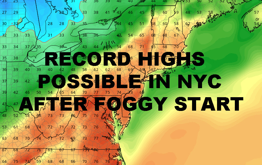 NYC RECORD HIGHS POSSIBLE TODAY AFTER FOGGY START