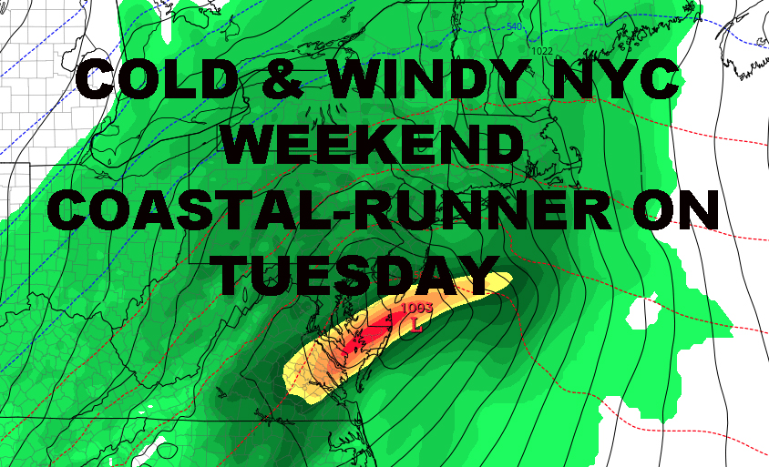 Good morning folks. The coldest air of the season has arrived into the New York City area, plus we are keeping our eye on the next system to start the week. This one has the potential to be a little bit stronger than last night’s, and will also help reinforce the cold air until another possible system next weekend.