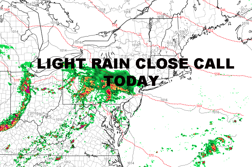 NYC SCATTERED LIGHT RAIN POSSIBLE TODAY – Good morning. If you’re just waking up, you’re beginning to realize why the forecasts for the New York City area have been so hard to pinpoint. Late yesterday, clouds rolled back in (as expected) after a beautiful day. However, things got complicated as the dry air drifted back to our northeast, allowing showers to walk the edge of our area.