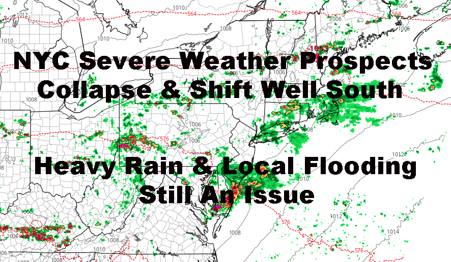 Yesterday, it looked as if NYC and areas on south were in the bullseye for some intense, severe weather action. However, everything shifted further south last night and early this morning as the wave we were thinking would cause all of the issues, developed early.