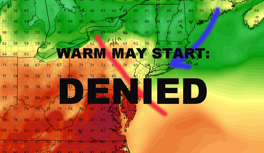 Good morning everyone. The outlook in the NYC area for the next week or so is not so great to put it plainly. We’ll have rain, but a lack of washouts; and sun with a lack of warmth. We’ll also get pretty close to very warm air, but get denied as the mid-Atlantic basks in the glory to start May. Such is Spring in NYC, where we get these little setbacks before things finally pop.