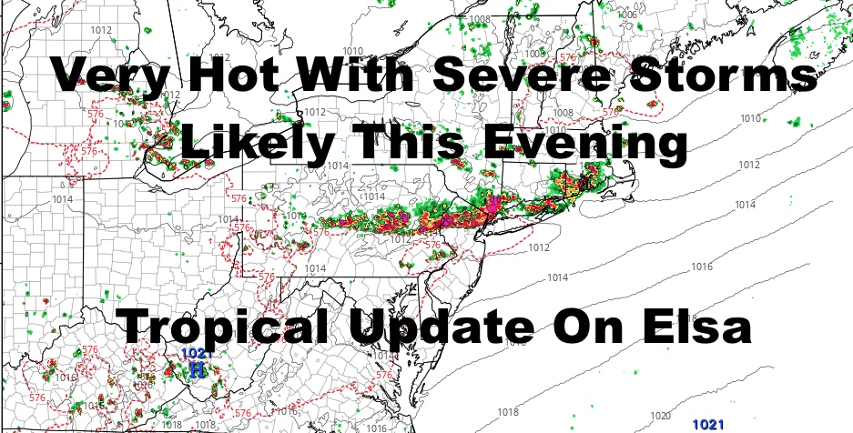 For us, Elsa will help enhance our approaching front for Thursday and Friday. That’ll equate to gusty showers and storms for Thursday and humid mid to upper 80’s; then a showery and breezy day on Friday with humid conditions and low to mid 80’s.