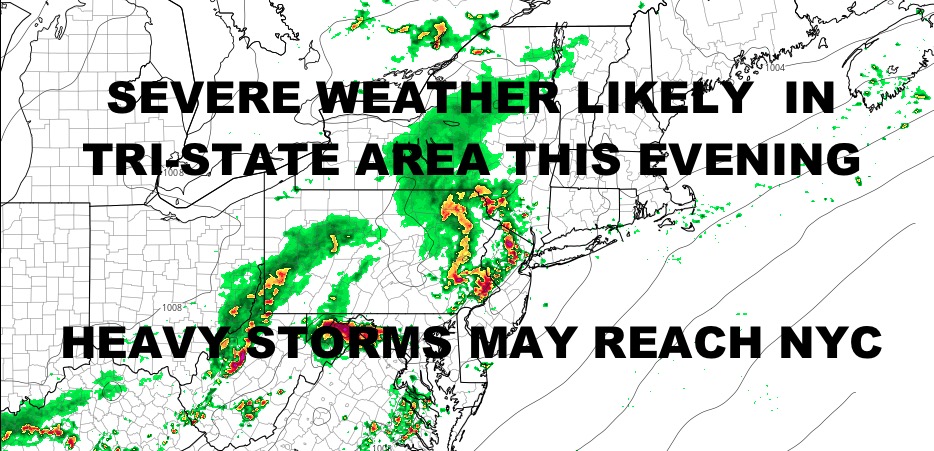 Heating of the day, along with the help of a wave of low pressure, will help spawn heavy showers and storms throughout the Ohio Valley and into Pennsylvania. We’re expecting those storms to reach severe limits and reach into parts of New Jersey and upstate New York as they trudge eastward. We’ll also watch closely to see if those storms survive the trip to New York City, which is quite possible. The biggest risk with these storms will be large hail, damaging winds, frequent lightning, and torrential rain.
