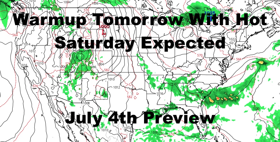 Good afternoon everyone. Showers and clouds are on the move to make way for a nice Friday – Sunday. However, the heat returns for a 2 day stint this weekend, then we go more towards seasonal. We also have a preview on the long range and what we may or may not expect for July 4th.