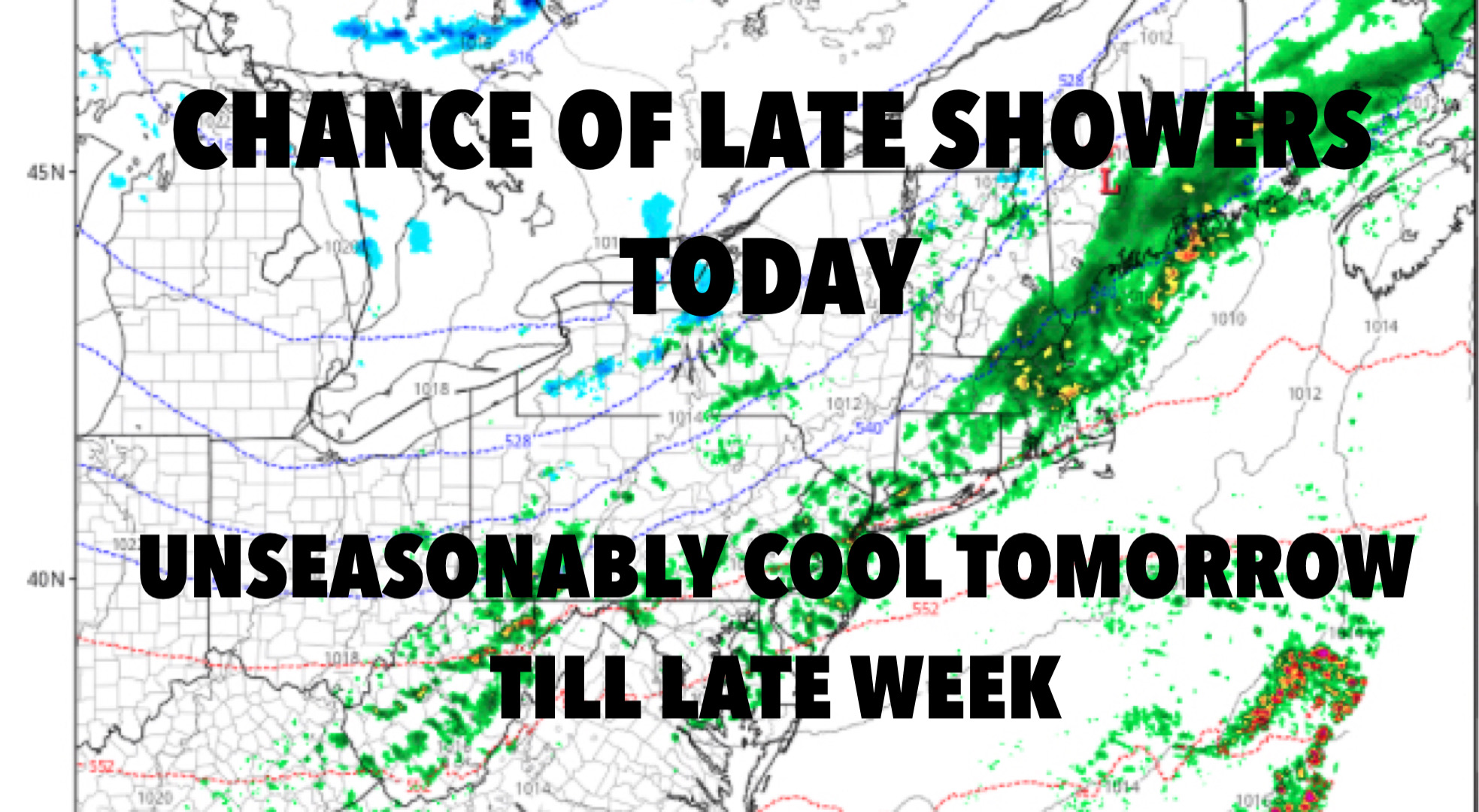 Clouds are already heading in as showers ride up and to the north of NYC. They’ll be sinking south though with cooler air heading in. We’ll have highs in the mid to upper 60’s today, with showers later on today and into the night.